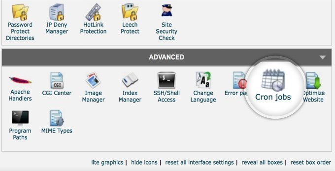 Once you do that, you need to setup a real cron job and execute the wp-cron.php file with it. You don’t want to trigger it too often – 30 minutes should be fine for most of the websites. To do this, login to your cPanel and go to the Cron jobs tool located in the Advanced section.