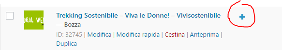 Una volta effettuato l’accesso al pannello di controllo, nel menu a sinistra cliccare su “Prodotti”. Tra la lista dei prodotti, scegliere quello da tradurre e cliccare sul simbolo “+” a fianco del nome.